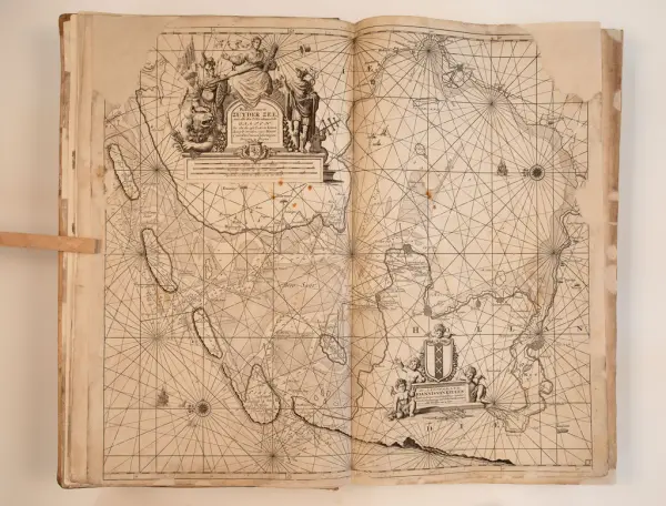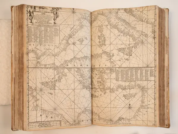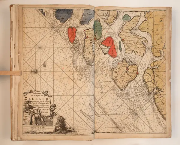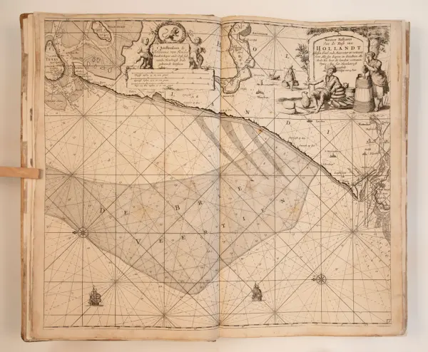 Bilderna var tillsammans med själva kartbilden ofta handkolorerade och påkostat dekorerade. Försättsbladen och kartorna var utsmyckade med bilder hämtade ur den grekiska mytologin med vidunderliga sjöväsen av alla de slag. På sjökorten seglade avbildningar av samtida fartygstyper mellan vackra kompassrosor.