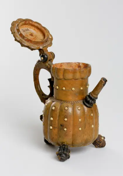"Kanna och pokaler af masurträ med insatta benpärlor, välornerade och af ädel form, svarfvade och begagnade fordom såsom drickeskärl,"
