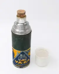 Öppningen av termosen stängs med en kord och därefter det vita plastlocket.