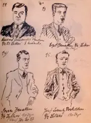 En samling skisser tegnet av rettsskriver Arnesen ved Oslo lagmannsrett.