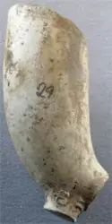Engelsk pipa med hyllning till Fredrik den store. Tre kronor och "FR". Klackmärke krönt "W/M" vilket visar på tillverkaren William Manby verksam i London 1719.