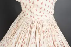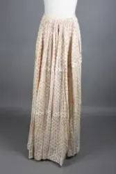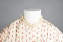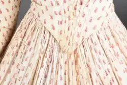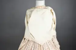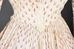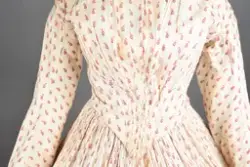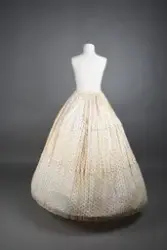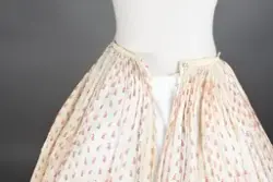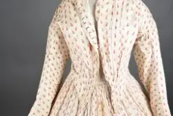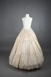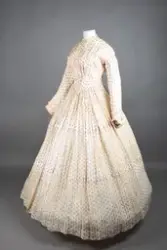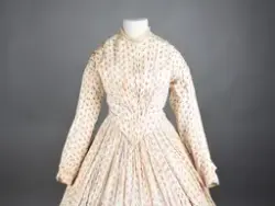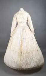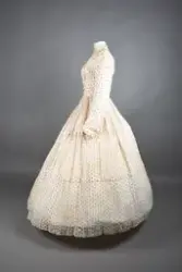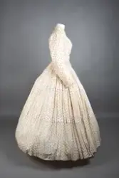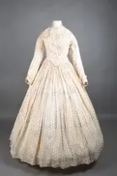 Opprinnelig datert til ca. 1950, men omkretsen/størrelsen til skjørtet indikerer bruk av en stor krinoline. Større enn det den er avbildet med. Det ville vært vanskelig å få til den formen og størrelsen med kun lagvis av underskjørt. Krinolinen ble oppfunnet i 1956. De smale ermene indikerer midten av 1860-tallet da dette ble mote noen år ut i dette tiåret.