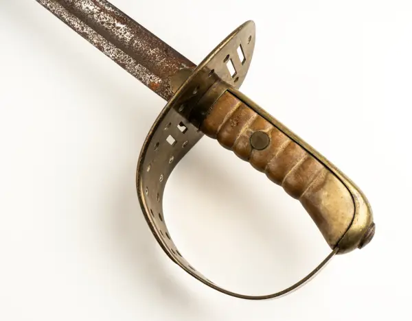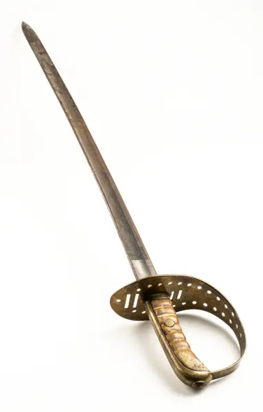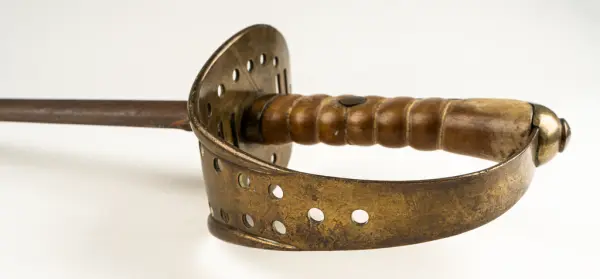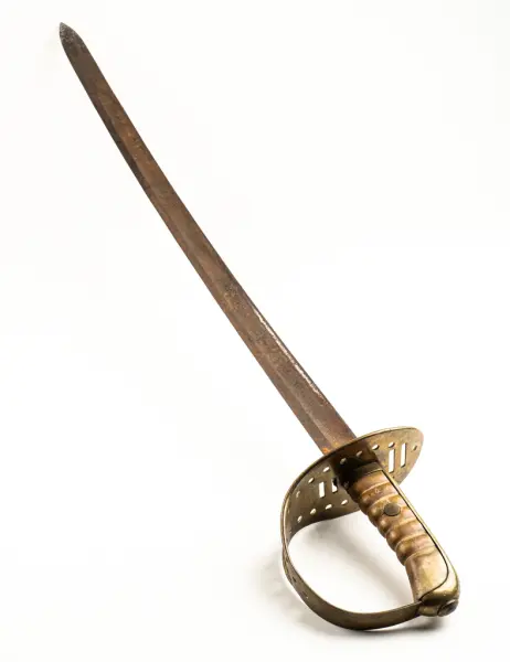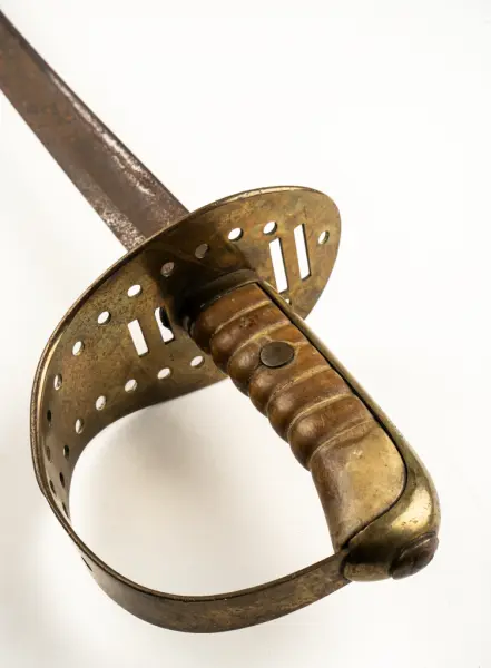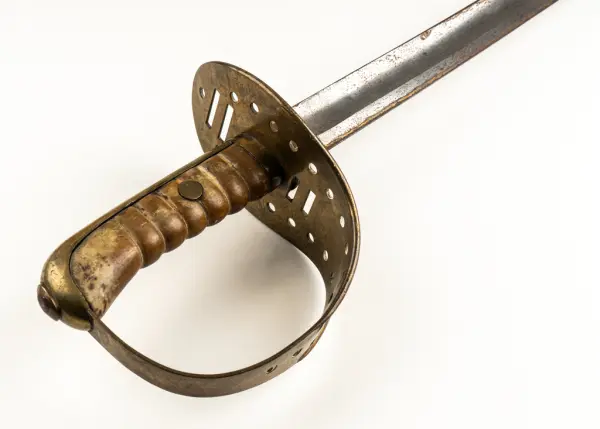 - Eneggad sabel av mässing som använts i kavalleriet sent 1800-tal. Sabeln hittades av några pojkar i en skog i Gävletrakten.