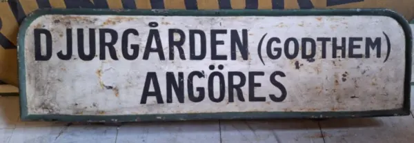 Skylt, så kallad tilläggsskylt, för en ångslup som troligen skulle till Lidingö. 1920- eller 1930-tal.