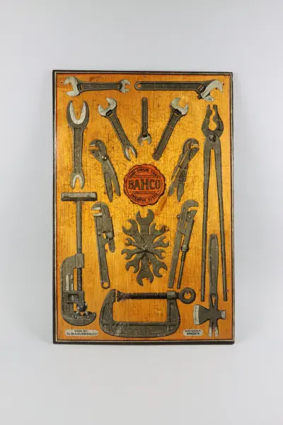 - Reklamskylt som brukats i Bröderna Wijklunds Järnhandel AB. Gåva till Skansen av Järnhandelns Intresseförening.