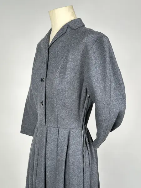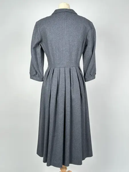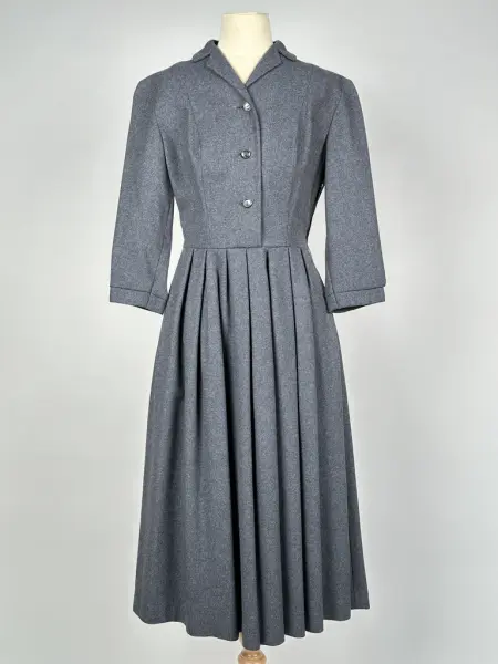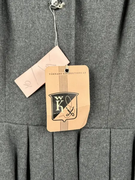 - Klänning från 1940-1950-talet. Tillverkad vid Värnamo Konfektions AB i Värnamo. Inköpt på pop-up butiken Erikssons Damekipering. En tidsbegränsad koncept-butik av företaget A. Marchesan som sålde av ett lager oanvända damkläder från 1940-1970-tal.