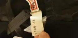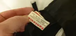 Korsett av gummiresår och spets. Svart. Dragkedja mitt fram med hyskor och hakar under. Axelband löstagbara. Kuporna har metallbygel. 6 st strumpebandshållare. Mitt bak parti av tunt blankt elastiskt material. Märkt: "Fantasia. Made under lisence from Lillyette Braserie 10 inc. USA. Fintvätt 40 (grader)". Storlek 38.