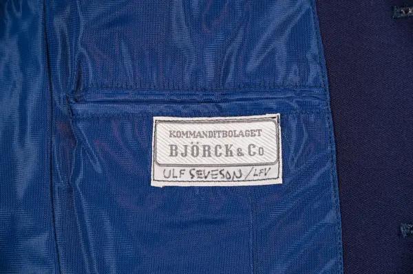 - Ingår i en hel kostym bestående av kavaj, väst och byxa som tillhört Ulf Seveson, tidigare anställd på Luftfartsverket.
