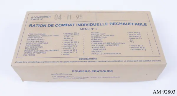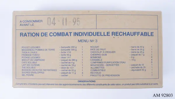 Föremålet ingår i ett förvärv som gjordes 2024 från Raimo Leinonen med föremål från hans utlandsmissioner under åren 1987-2006. Föremålen utgörs av namnbrickor, medaljer, en flagga och en matranson från de olika insatserna samt ett stort antal dokument och fotografier. Han tjänstgjorde främst som fordonsförare i följande FN- och Natoledda missioner: