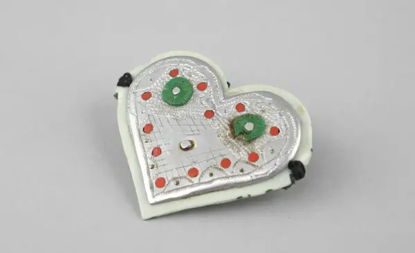 Ved en anledning fikk Kari dette lille hjerte som takk for maten. Klenodiet tok hun med seg som en av få gjenstander da familien ble tvangsevakuert den 04.11.1944. Hun tok vare på hjertet helt til det ble gitt til museet.