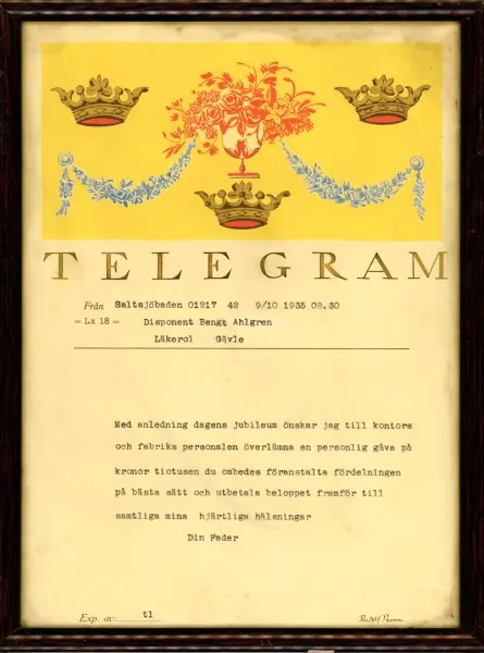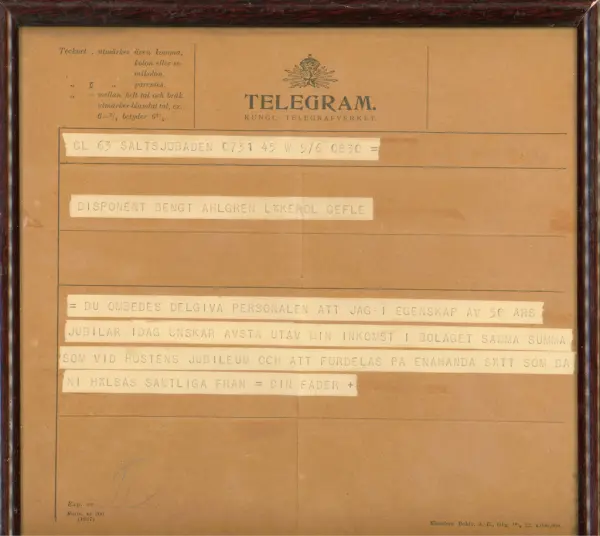 - Föremålet kommer från Ahlgrens Tekniska Fabrik i Gävle i samband med en donation av MalacoLeaf AB 2002.