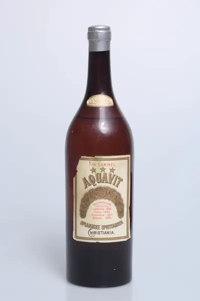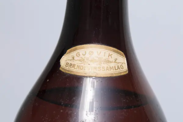 - En flaske "Fin gammel *** (tresjerners) Aquavit" fra Oplandske Spritfabrik, Christiania. Solgt gjennom Gjøvik Brændevinssamlag. Flaska er fra før 1922 da Vinmonopolet ble opprettet, og kan være fra spanskesyken, da akevitt ble utskrevet på resept til medisinsk bruk.