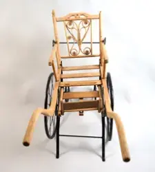 Vi veit ikkje kor rullestolen kjem i frå, kven som har laga den eller kor den er laga. Det står skrive "Aarseth 1912" med handskrift på undersida av setet.