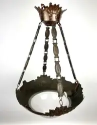 Taklampan var placerad uppe i taket i rum 201 på övervåningen. Rummet var inrett med liten soffa med bord samt sidobord. Lampan ägdes och tillhörde familjen Ahlm på Ryttaregården fram till 2012. Tidigare ägare Gösta Ahlm, Ryttaregården, Bröms, Söderåkra socken. Föremålet ingår i en testamentarisk gåva 2012 av Gösta Ahlm till Kalmar läns museum.