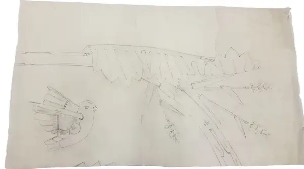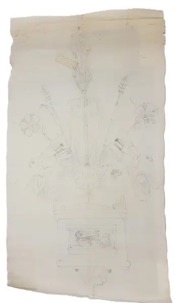 - Skissen kommer från Thyra Grafströms textilateljé och ingår i Hedvig Ulfsparres textilsamling på Länsmuseet Gävleborg.