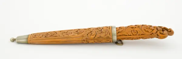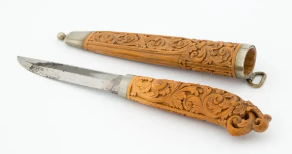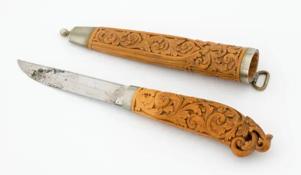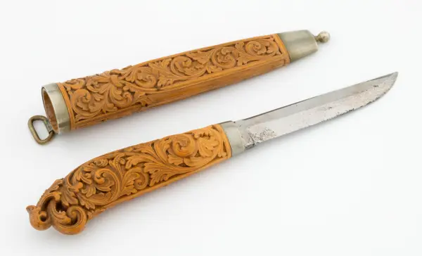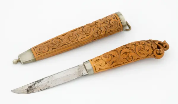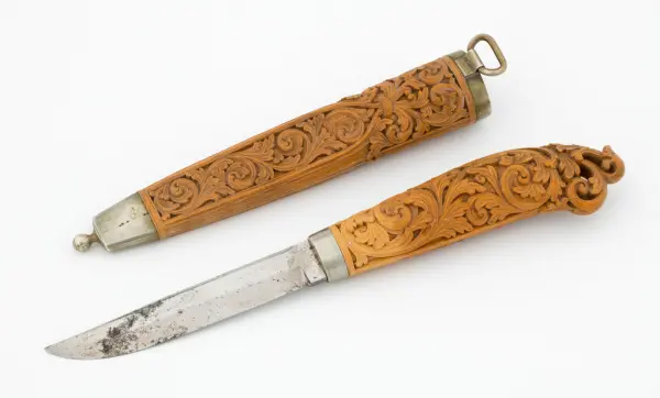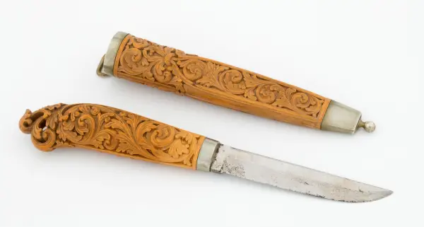 «Ole Olsen Moene (1839-1908) frå Lønset i Oppdal satte dype spor etter seg med sin kunst. Han var en usedvanlig dyktig tresjærer, men signerte dessverre sjelden sine kniver, og det oppstår derfor nesten alltid diskusjon når en påstått moenekniv kommer på bordet.