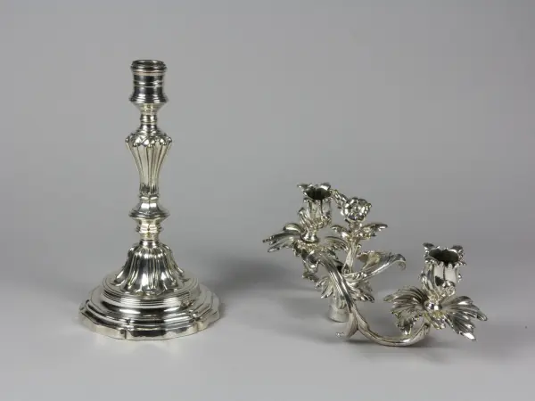 - Ljusstake av argent haché tillverkad i Frankrike under 1700-talet. Inköpt på onlineauktion vid Uppsala Auktionskammare. Införlivad i samlingarna 2018-08-30.