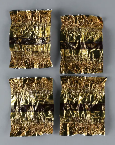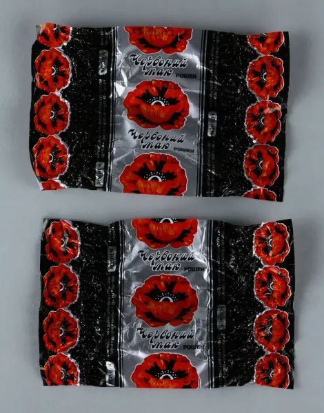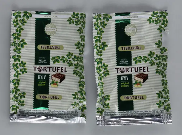 Motivet på askens lock har målats av konstnären Boris Grokh som har sitt urspung på Krimhalvön, men som efter den första ryska invasionen 2014 flydde till staden Lviv i västra Ukriana. Efter Rysslands fullskaiga invasion i februari 2022 spreds den hjältemodiga berättelsen om den ukrainska gränsvakten Roman Hrybov som vägrade följa de ryska soldaternas uppmaning att kapitulera och lämna sin post. En tid senare utlyste det ukrainska postväsendet en tävling där de efterlyste illustrationer av händelsen för att trycka som ett frimärke. Över 500 ukrainska konstnärer deltog och Boris Grokh utsågs till vinnare. Målningen heter "Russian warship, go...! Glory to Ukraine!" och har kommit att symbolisera Ukrainas benhårda motstånd mot en mäktig och skoningslös angripare. Frimärket trycktes i en miljon exemplar och hälften sålde slut på bara några få dagar. Vinsten från försäljningen gick till den ukrainska försvarsmakten. Den stora framgången med försäljningen ledde till att det ukrainska postväsendet valde att trycka fler frimärken med andra motiv som syns på chokladaskens sidor.