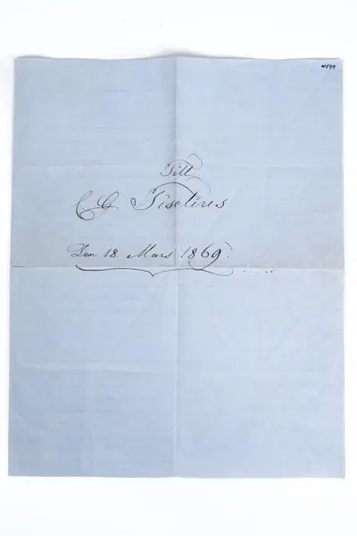- En hylla (O 04598) ett markskrin (O 04599) och kopparna (O 04600-O 04610) skänktes av fruarna boende i Långa Raden på Skeppsholmen år 1869 till amiralitetspastor Tiselius med anledning av dennes utnämning till kyrkoherde i en annan församling och därför flytt från Skeppsholmen.