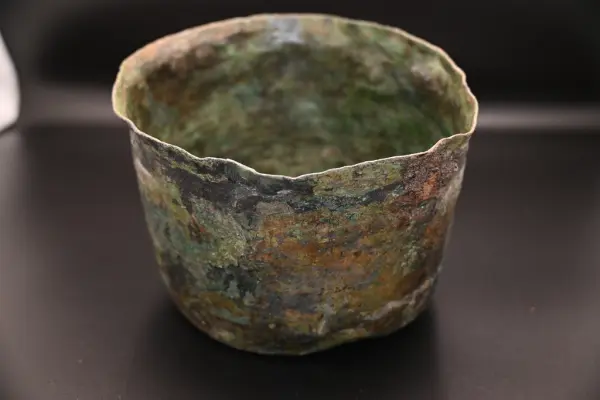 När kärlet kom till konserveringen låg det kvar i sitt preparat och var omgivet av intorkad hård jor...