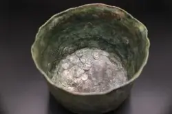 Kärlet är tillverkat av en driven plåt av koppar eller kopparlegering som stomlötts ihop. Botten och ovankant har laskats och lötts fast.