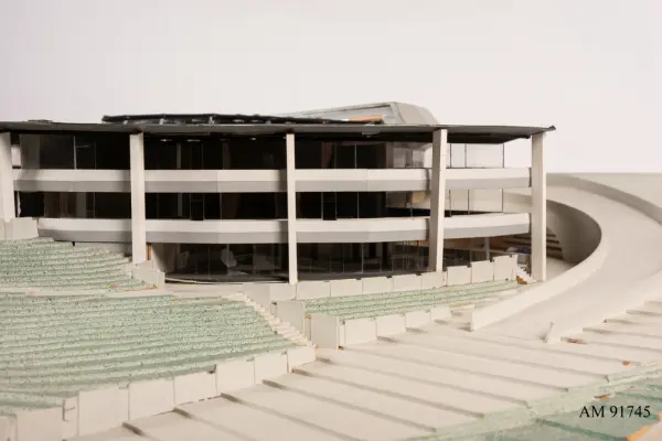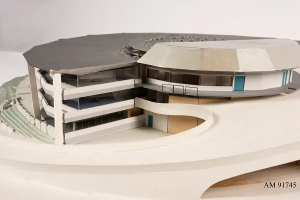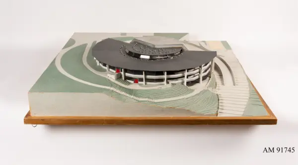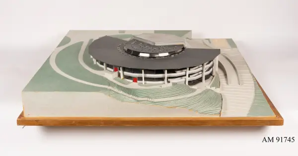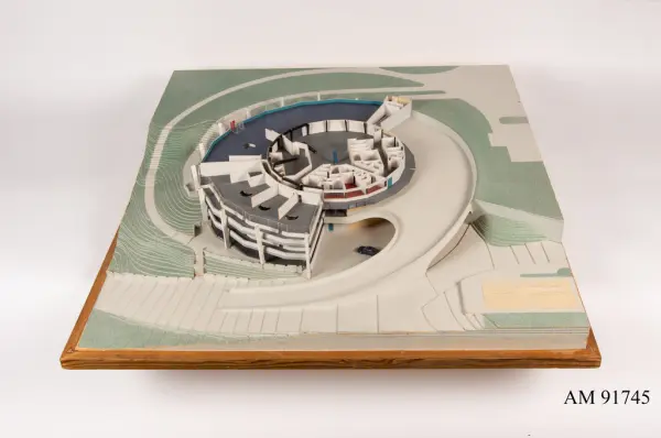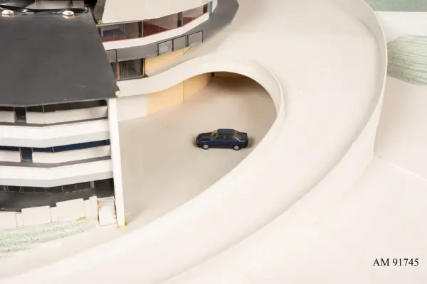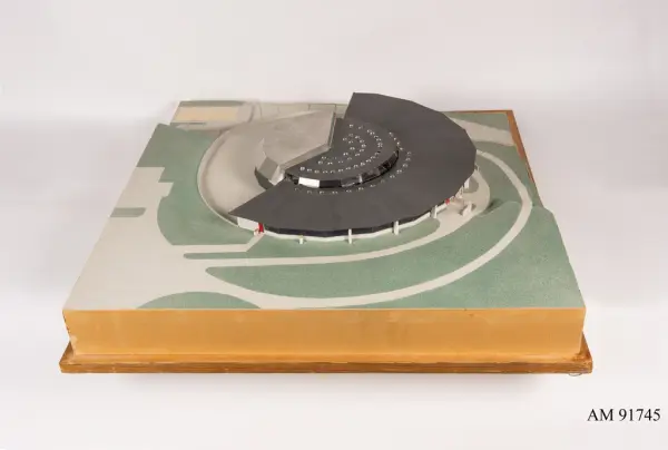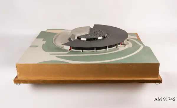 Modellen är tillverkad i början av 1970-talet av arkitekten Milo Huttner som konstruerade flera anläggningar för Fortifikationsverket. Den föreställer den riktiga militärrestaurangen som uppfördes under samma tid vid Bohuläns regemente I 17 i Uddevalla. Byggnaden står fortfarande kvar och blev under 1990-talet omgjord till en skola vid namn Fridaskolan på den plats där det nedlagda regementet en gång låg.