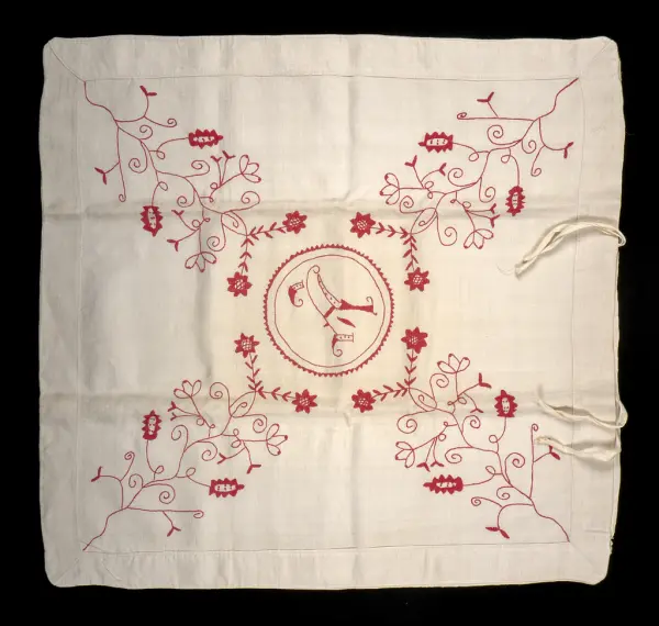 Föremålet ingår i en samling handtillverkade textilier, där flera andra föremål bär initialer som med större säkerhet kan kopplas till Anna Christina Nilsdotter. Se: VMF045176–VMF045181.