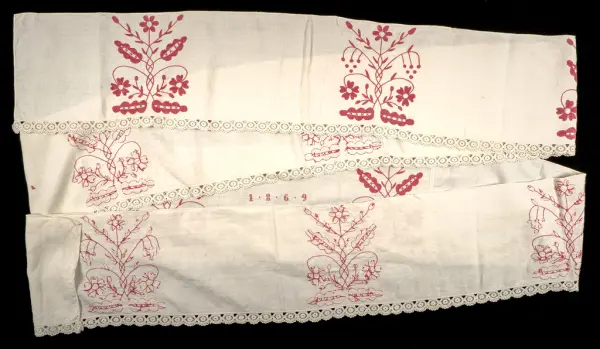 Produktion: 1869 (Årtal angivet med brodier på hängklädet)