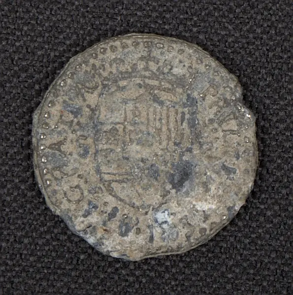 Hade myntet varit äkta hade det kunnat dateras till sent 1500-tal, under Filip II:s regeringstid i Spanien - en tid då spanjorerna var i full färd med att tömma Latinamerika på silver. Framsidan och diametern stämmer överens med ett 2 real-mynt av silver, medan baksidan verkar vara inspirerad av ett guldmynt från samma tidsperiod.