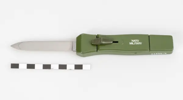 Stilettkniv. Gatuvåldsvapen som beslagtagits i Kronobergs län.