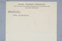 - Detta ingår i en samling prover från KTH som togs emot 1963 men inte katalogiserades. Samlingen består mest av metallprover men det finns även annat material.
