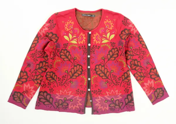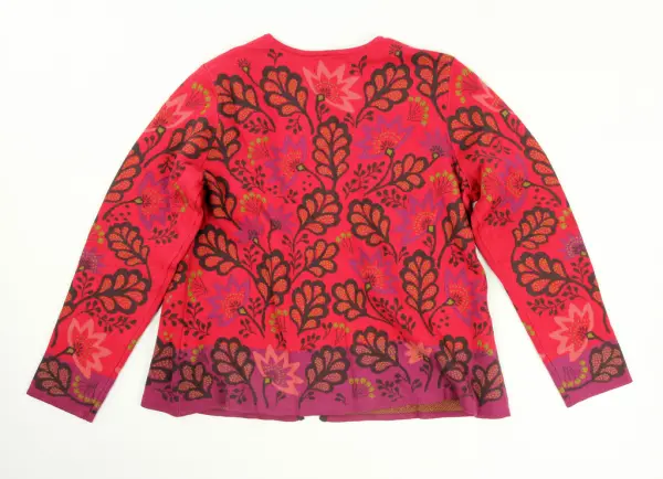 Enligt medföljande etikett (se följande nummer) kostade koftan 995 kr 2020 i affär. Tröjan är skänkt direkt till Nordiska museet från Gudrun Sjödén, och därför oanvänd.