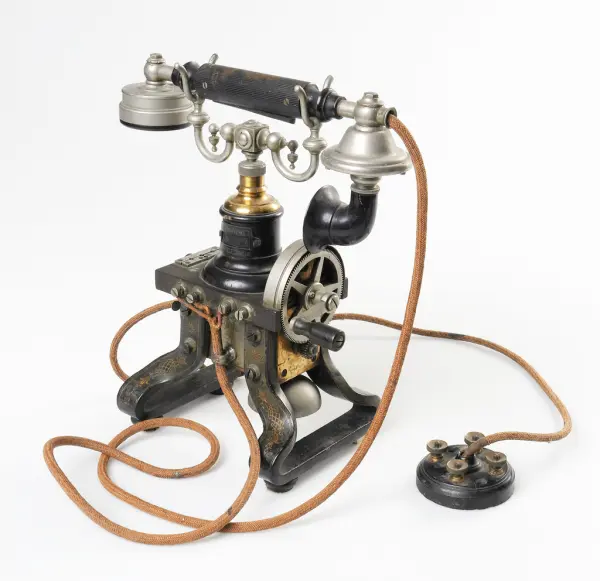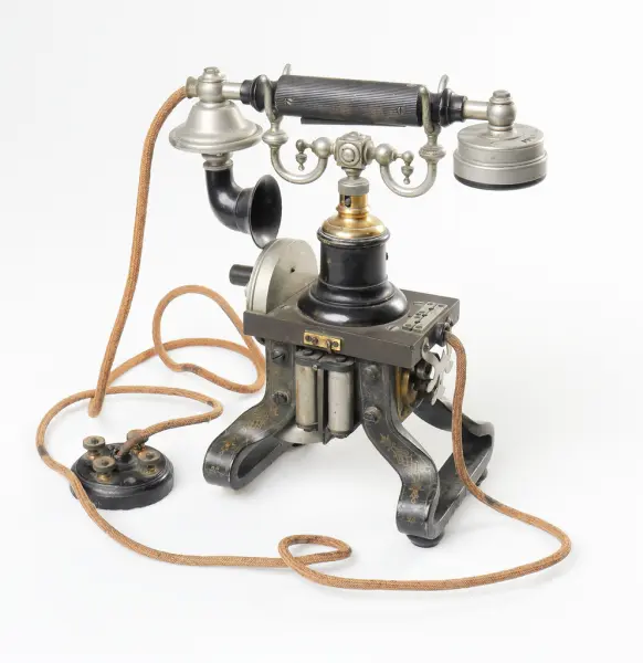Bordstelefon tillverkad omkring 1895 av Kungliga Telegrafverkets Verkstad, Stockholm (grundat 1891),