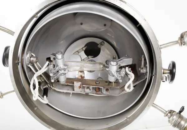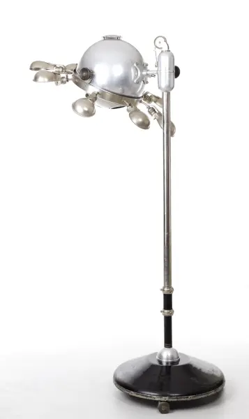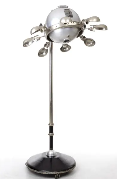 Denna kvartslampa är vår tids solarielampa, och under 1900-talets första hälft så användes den inom läkarvården som behandling av Engelska sjukan och tuberkulos, men även öroninflammation. Vid användning av lampan så fick patienten ha små svarta ögonlappar för att förhindra ögonskador.