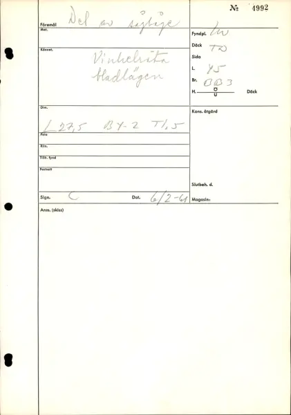 I Vasa, Trossdäck, balk 26-27, babord, Längd från för: 4500- FyndplatsI Vasa, Trossdäck, balk 26-27, babord