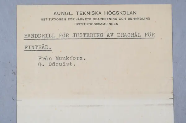 - Detta ingår i en samling prover från KTH som togs emot 1963 men inte katalogiserades. Samlingen består mest av metallprover men det finns även annat material.