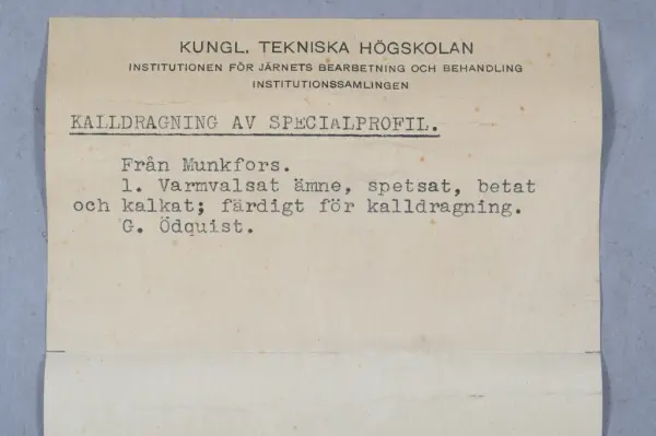 - Detta ingår i en samling prover från KTH som togs emot 1963 men inte katalogiserades. Samlingen består mest av metallprover men det finns även annat material.