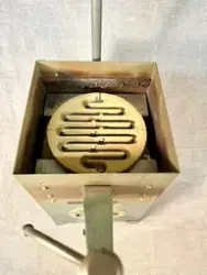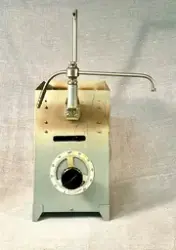 - Laboratorieapparat som ser ut til å være brukt til oppvarming, muligens en form for ovn eller brenner.