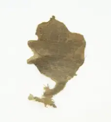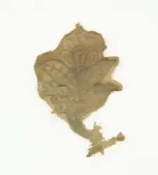 - Funnet i grav kiste/grav 10 i Hiort-kapellet. Fragmentene er funnet under kroppens hode, og kan ha vært del av et hodeplagg.
