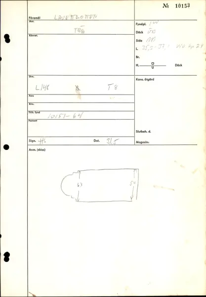 Påträffad vid kanonport 24. 10153 utgör huvudnummer för lavetten. Tillhör fynd 10151-64.