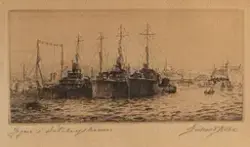 - Gerhard Albe (1892-1965) började i Skeppsgossekåren som 14-åring och blev underofficerskorpral 1912. Efter en olycka på en torpedbåt skadade han benet och bytte då bana och började studera teckning. Han fick tillstånd från Kungl. Majt:s att tidvis följa flottans övningar som marinmålare. Han blev sedan också museidirektör för Sjöhistoriska museet i Stockholm 1945-1960.