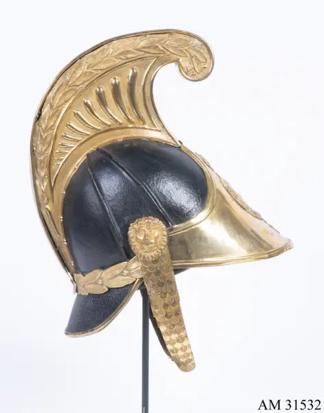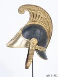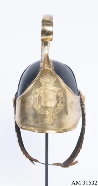 En ny modell av kask för Livregementets dragonkår fastställdes i maj 1840 och vid nästkommande års generalmönstring var nya kaskar levererade och godkända. De var då försedda med svart tagelliggare som fästes på mässingskammen. Detta exemplar är tillverkat efter 1845 eftersom det inte har något fäste för tagelliggaren.