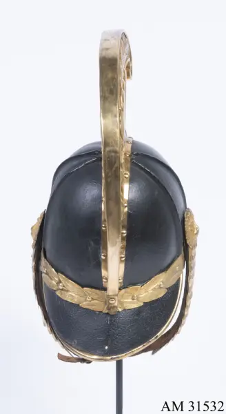 Består av jacka med epåletter, skärp, ridbyxor, kask, kartuschlåda med rem och koppel.