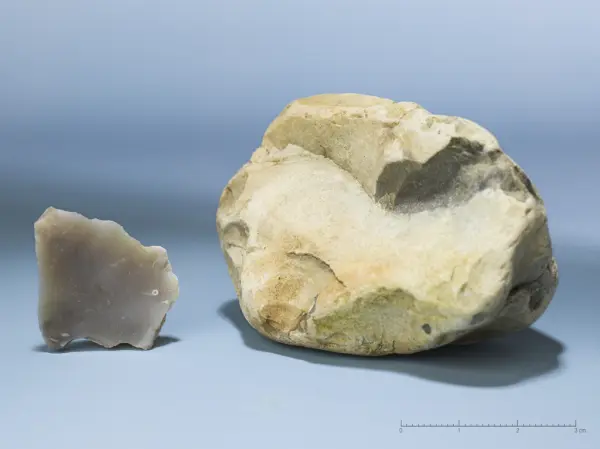 Avslag og flintknoll funnet ved Oltedalsvatnet. Funnet på overflaten i strandsone med grus/sand ved regulert vann. Funnet lå en halv meter nedenfor antatt opprinnelig strand.- funnet avBrit Helen Rørvig Torkildsen