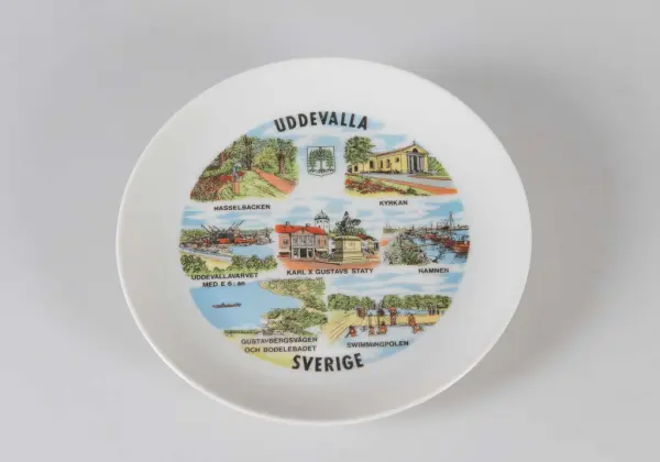 Gåva av tysk familj från Güstrow som inköpte tallriken på besök 1992 för att hälsa på tyska vänner som var bosatta i Uddevalla.