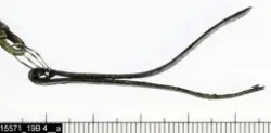 Pincett och nålhus numera fästad vid kedjan med ståltråd (monterad för utställningssyfte) -Access/SG-08