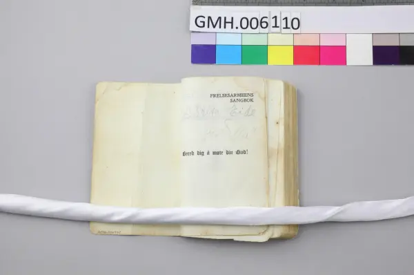 Sangboken tilhørte Brita Eide fra Fella på Sørøya. Hun var Ranveig Camilla Berg sin farmor. Boken har sannsynligvis vært med henne i tvangsevakueringa.