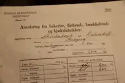 Transportseddel for høi, kvittering for innkjøpt høi, anvining paa indkjøp av natursmør, anvisning for kjøp av 1/2 fl. sykebrennevin, og ansøkning fra bakerier, flatbrød-, knækkebrød-, og kjæksfabrikker.
