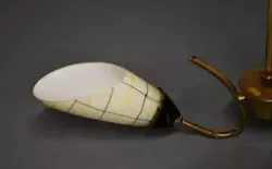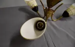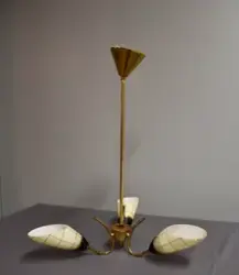 - Stempler og klisterlapp-merking er plassert oppi 'kremmerhuset'. Lampen hang i Folldalslia, da giver kjøpte huset i 1999. Huset er bygget i 1962, og stilmessig passer lampen til den tid og er antakelig kjøpt da. Nemko-merket tyder på norsk fabrikasjon.