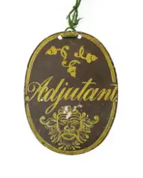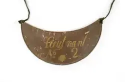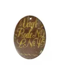 Ulike skilt av metall, antagelig for Brannmannskap. Alle skiltene har håndmalt skrift og dekor.